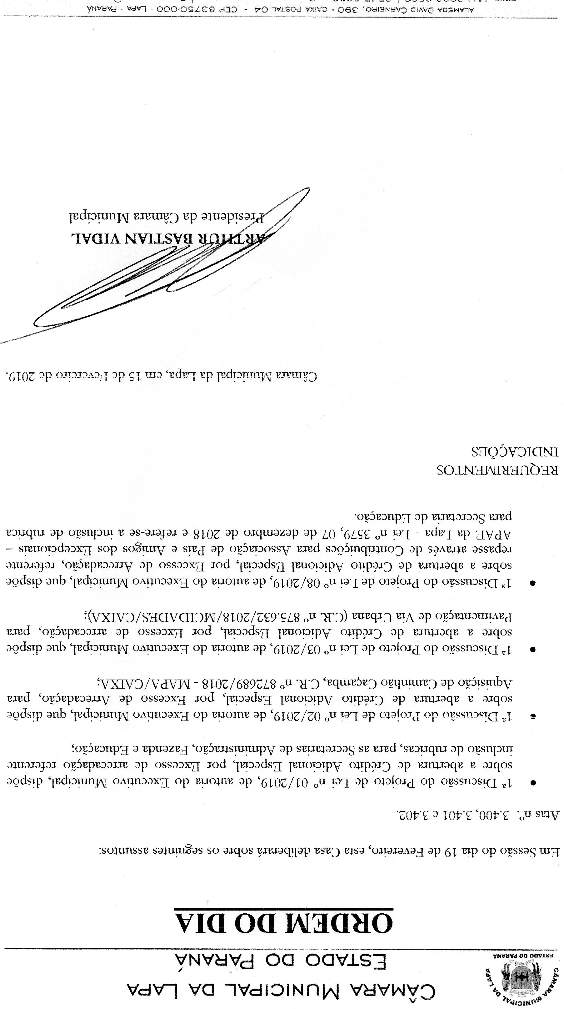1ª Sessão Ordinária da 3ª Sessão Legislativa da 17ª Legislatura